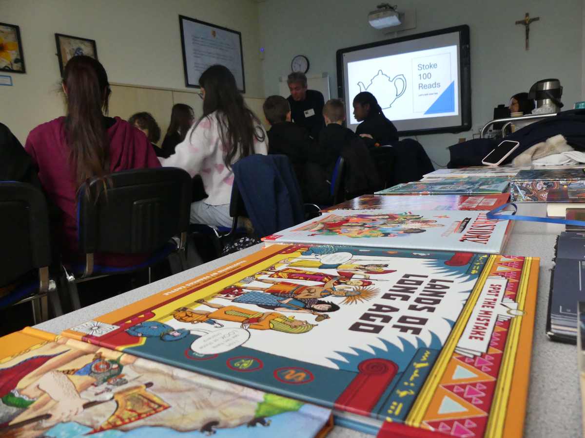 Matt is designing the promotional materials for the Stoke 100 Reads project which our students have been involved with through Read to Lead in Fidei time.